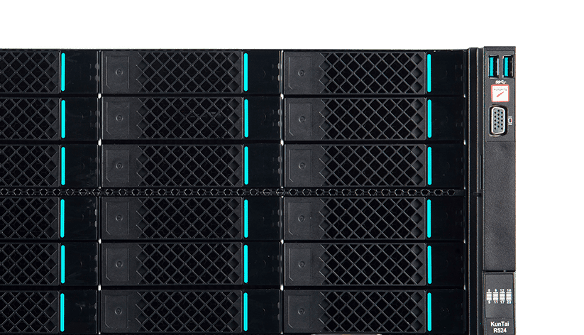 KunTai R524 存储型服务器是冰球突破数码基于鲲鹏处理器推出的新一代 ARM数据中心服务器。主要面向存储业务,具有海量存储、高性能、低功耗以及易扩展的特点,适合为大数据分析、软件定义存 储等应用场景的工作负载进行髙效加速。